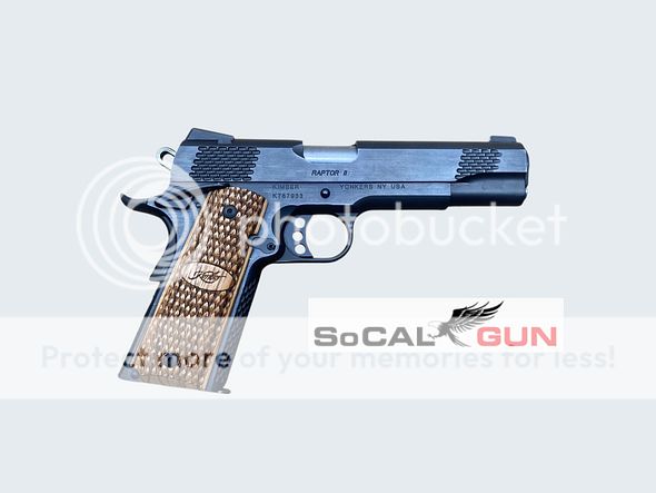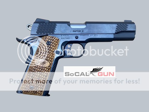 | Kimber Raptor II | Semi-auto pistol in 45ACP. Full size 1911 platform with 5" barrel. Blue finish with wood grips. Factory case. pic pic pic | 1250.00 |